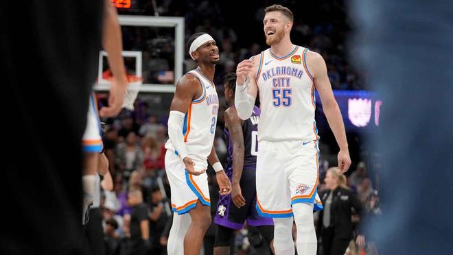 这对7英尺高的内线组合,一端守护篮筐,一端梳理进攻节奏,多次联手贡献20+得分的两双表现——包括哈滕斯坦的客场生涯最佳一战——帮助雷霆拿下多场大胜。