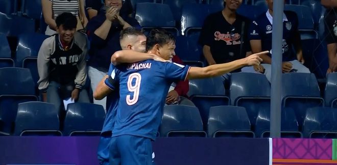第15分钟,海港中后卫之间出现巨大的漏洞,素巴猜及时插上,颜骏凌出击有些慢,武里南联取得领先。