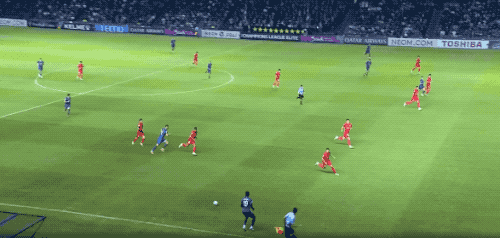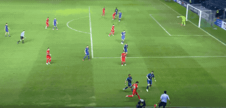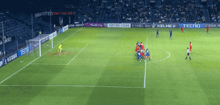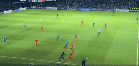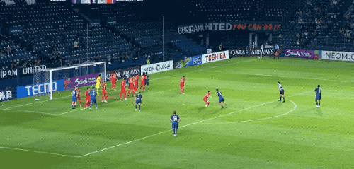 开场不到5分钟,在武里南联前锋的逼抢下,亚力斯祖一路往回盘带,一脚有力的回传,差点自摆乌龙。