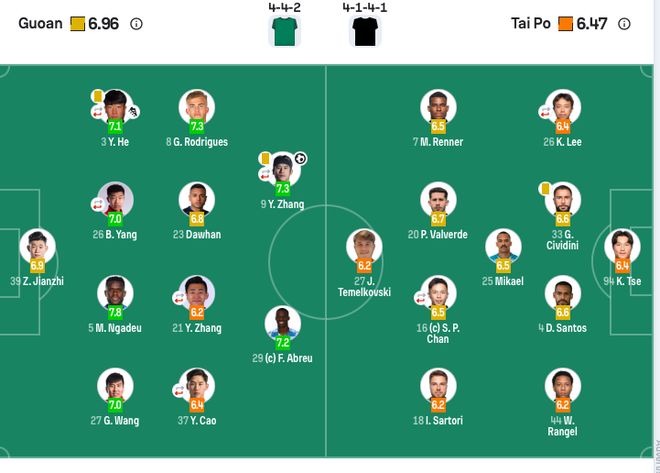 后卫:4-达西埃尔、26-李家豪(69’9-保利尼奥·西苗纳托)、33-加布里埃尔·奇维迪尼、44-韦弗顿·兰热尔;