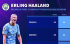 开局状态火热,哈兰德曼城生涯英超前10轮40场已打入50球